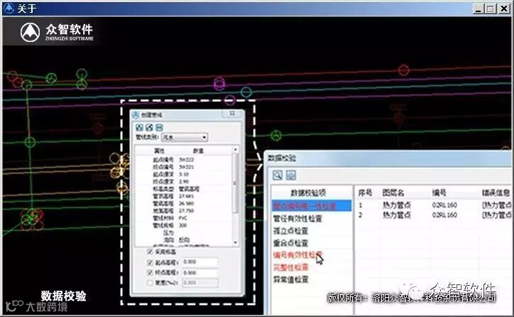 根据配置项检测当前图纸中管线管点数据是否符合规范标准,并显示检测结果。
