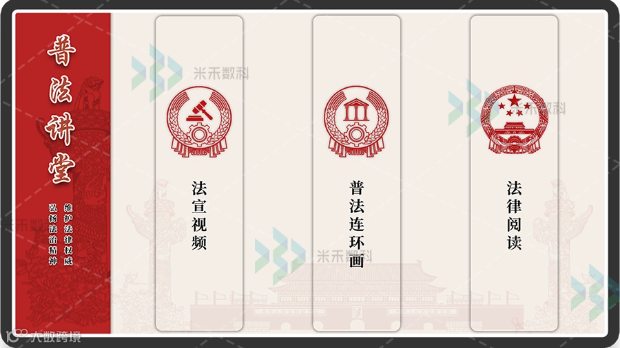 米禾数字作为专注于法治基地方案设计、内容策划、展项定制、软件开发和系统集成一站式服务公司,始终以创新为驱动,以质量为核心,为学校、社区、企业等法治阵地及各类法治教育基地打造具有特色、富有实效的个性化法治宣传教育解决方案,创新法治基地普法宣传形式。