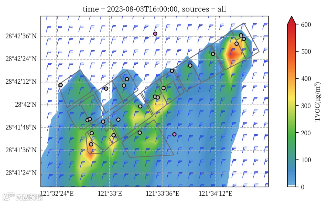 对已知污染源进行前向扩散模拟,可以实时掌握或预估下游受体点/区域受到的定量化的影响,既能为污染源管控提供有力证据,又可以支撑环境规划布局(监测点位布设等);