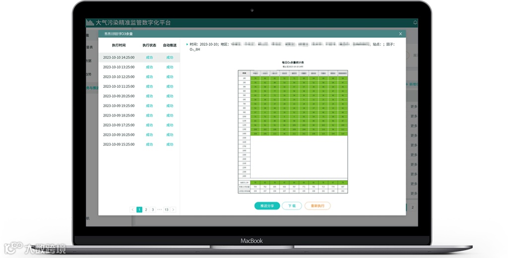 目前平台支持对以下5种数据/图片进行推送:【5分钟数据】、【每日余量表】、【多站趋势分析】、【实时污染趋势】、【5分钟趋势】。