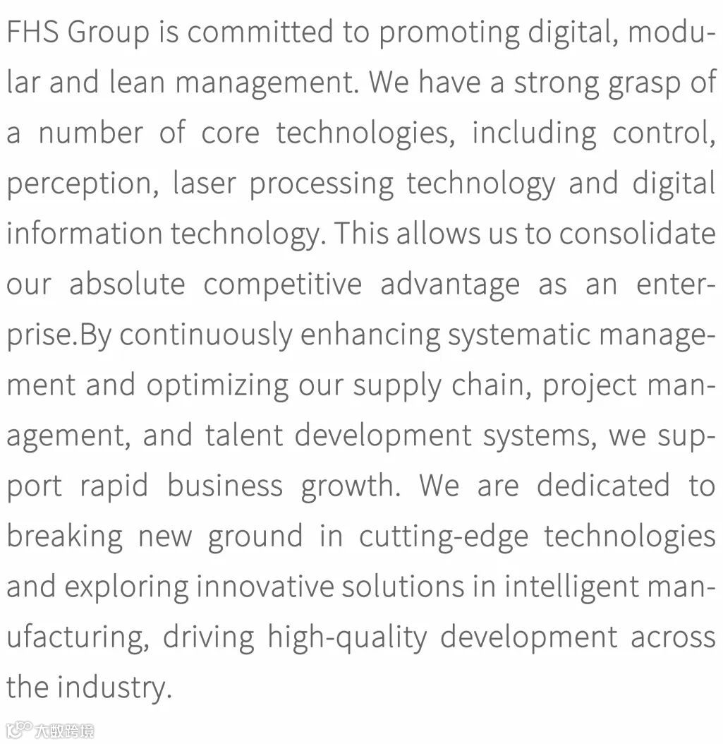 烽禾升集团持续推进数字化、模块化、精益化管理,把握控制、感知、激光加工工艺、数字信息科技等多项核心技术,巩固企业绝对竞争优势;持续加强体系化管理,优化供应链、项目管理、人才建设体系等,支撑业务高速发展;不断突破前沿技术壁垒,持续探索智能制造领域创新解决方案,助力行业高质量发展。