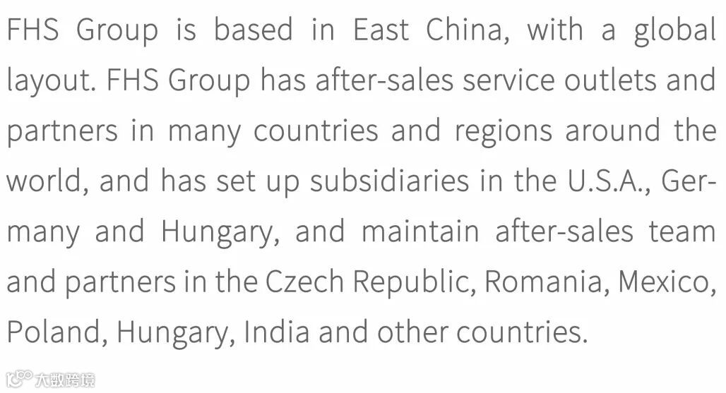 烽禾升集团立足华东、布局全球,烽禾升集团在全球多个国家和地区拥有售后服务网点和合作伙伴,目前已在美国、德国、匈牙利设立子公司,在捷克、罗马尼亚、墨西哥、波兰、匈牙利、印度等国家拥有自己的售后团队及合作伙伴。