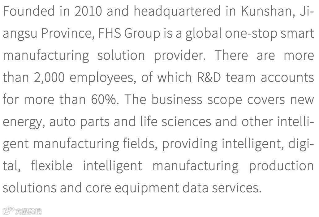 烽禾升集团智能制造业务创始于2010年,总部位于江苏省昆山市,是一家全球化一站式智能制造解决方案提供商。现有员工2000余人,其中研发技术团队人数占60%以上。业务范围覆盖新能源、汽车零部件及生命科学等智能制造领域,为行业提供智能化、数字化、柔性化智能制造生产解决方案及核心设备数据服务。