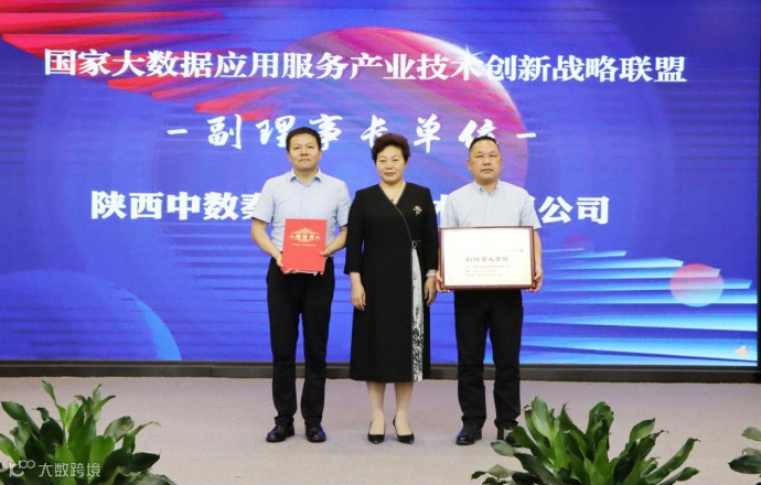论坛最让人激动人心的时刻,即陕西中数秦福信息技术有限公司正式晋升为联盟副理事长单位。在授牌的仪式中,由联盟理事长刘杰授予陈宏斌和汪智伟鲜红的证书和镌刻着联盟徽章的铜牌,这不仅象征荣誉,更意味着责任。汪智伟书记在感言中表示,企业将聚焦“大数据”“数字化”等特色领域,助力陕西数字经济高质量发展。