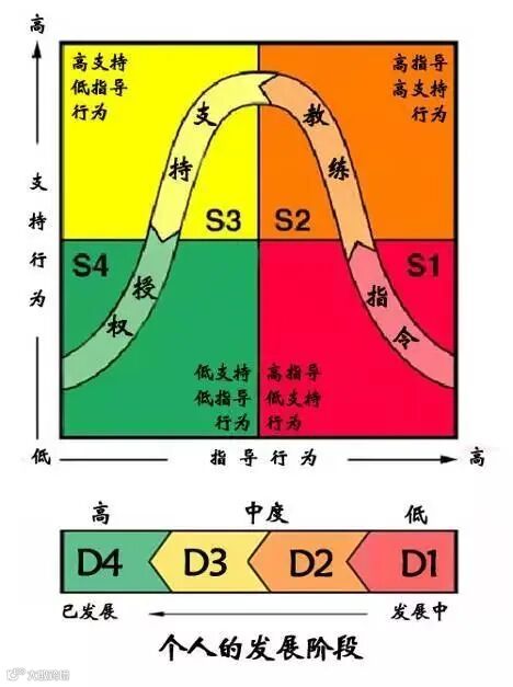 通过这四个发展阶段确定员工是需要指导还是支持。