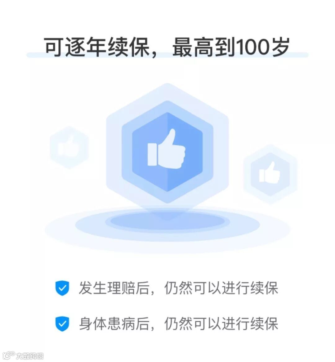 看到这种字样,以为买了就可以一直保到 100 岁,但深蓝君要提醒大家:可续保至 100 岁 ≠ 保证续保至 100 岁。