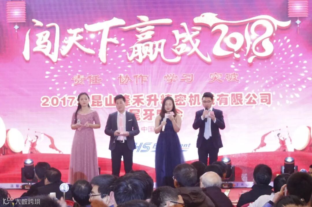2018年1月28日,烽禾升(FHS)全体员工在隆祺建国酒店举办了以“闯天下,赢战2018”为主题的2017年度尾牙晚会,公司全体员工,各子公司同仁,与公司领导欢聚一堂,共度联欢。