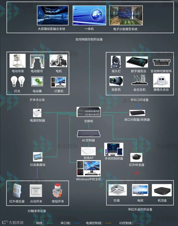 我们米禾数字展厅中控选用X86架构Windows电脑主机作为中控主机,所有受控设备可通过交换机、路由器、无线网等方式与主机相连,不管展厅有多大、应用的多媒体设备多丰富,都可在同一局域网内实现远距离中央控制。