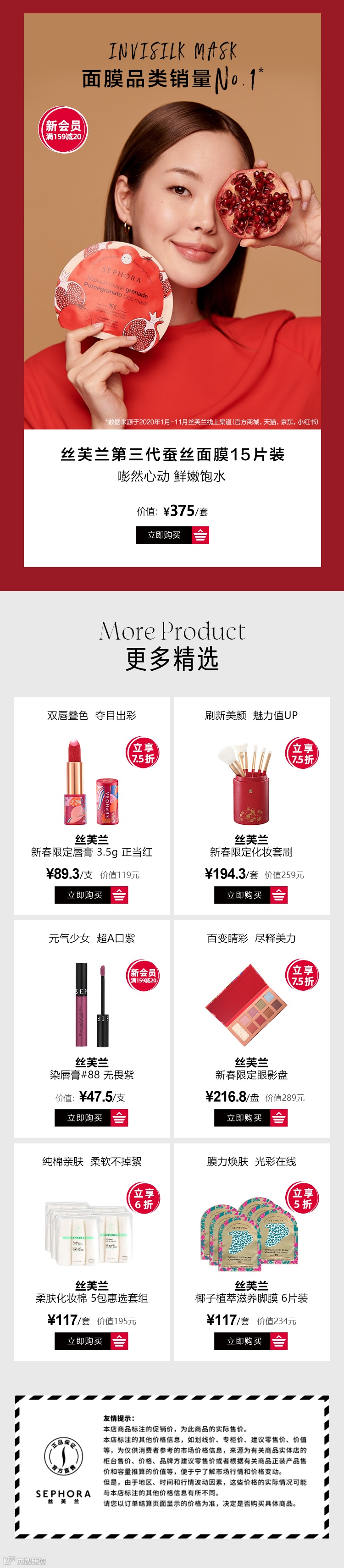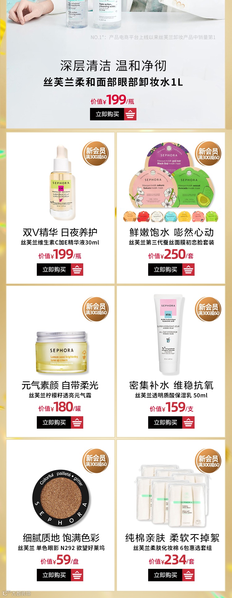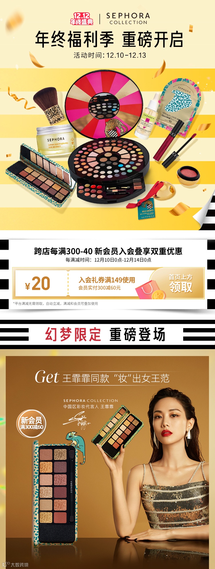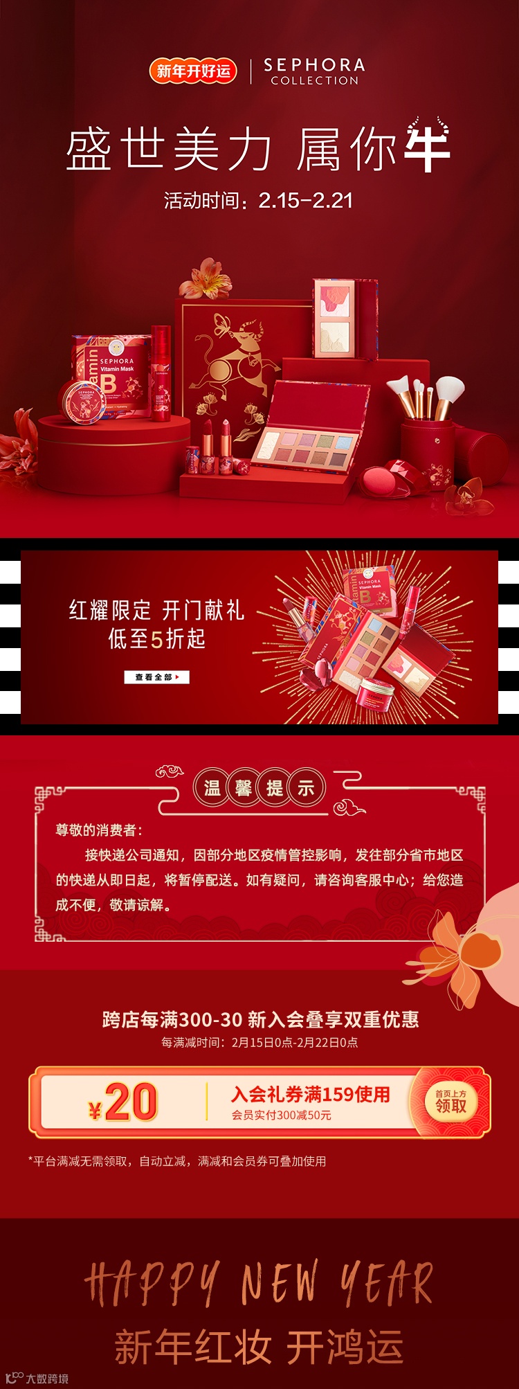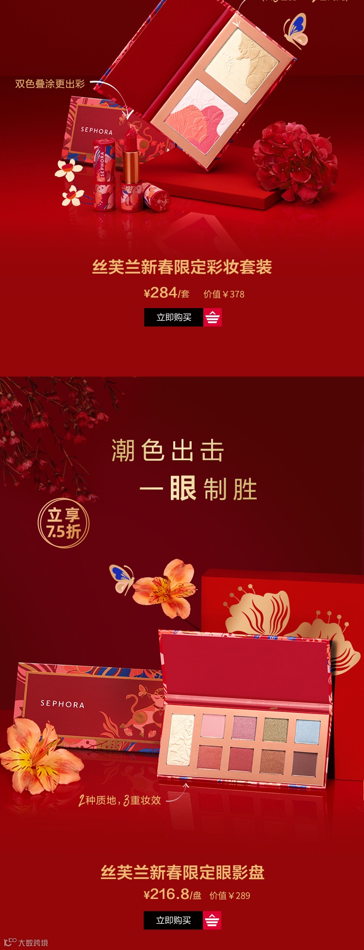 女神节临近,丝芙兰上线女神专属大促,以经典红金配色,绽放女性魅力。