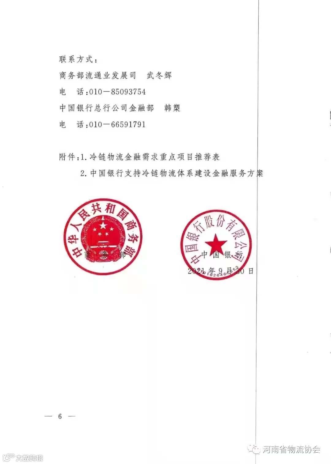 冷链物流对提升商贸物流专业化水平、保障食品农产品质量安全、促进居民消费升级意义重大。为深入贯彻党的十九届五中全会精神,落实党中央、国务院关于加快发展冷链物流决策部署, 深化金融供给侧结构性改革,商务部与中国银行将加大对冷链物流的金融支持力度,补齐冷链物流发展短板,创新金融服务实体经济路径,推动商贸物流高质量发展。现就有关事项通知如下: