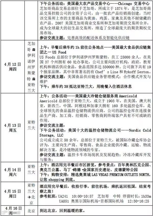 近几年在我国冷链物流行业快速发展过程中所遇到的众多问题,企业家们迫切需要学习发达国家冷链物流行业的先进运营与管理经验。为了给我国冷链物流行业的相关单位提供赴美国深入学习交流和参观考察的机会,我们计划于2018年4月8-16日进行为期9天的“中国冷链物流企业赴美国商务考察”活动。