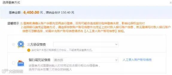 提 醒:如您需要选择扣款缴费方式,建议您在电子税务局【单位申报缴费方式选择】模块中确认缴费方式已选择为“自动申报缴费”,同时缴费账户与税务机关存在有效的三方协议。
