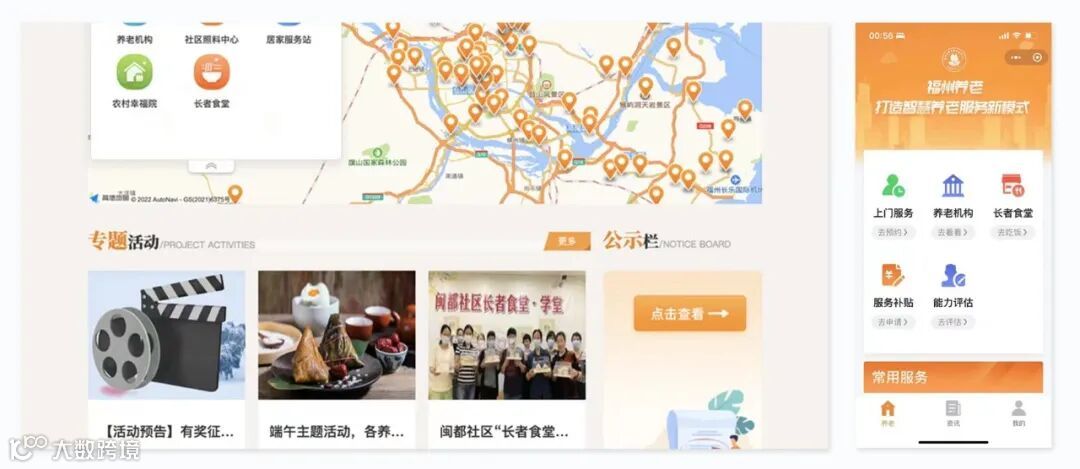 不止这些,福州智慧养老服务平台串联老年人及家属、养老服务机构、为老服务组织、政府(市、县、街道、社区)四方,打通了需求、供给、监管链条,实现了养老资源一站集合,养老服务一键上门,政务办事一趟不跑。该平台已汇聚养老机构147家,居家社区养老服务照料中心100家,提供养老床位超2万张,能让老年人及家属享受到淘宝式的养老服务点单体验,足不出户即可实现养老机构选择、机构床位预订、居家上门服务、长者助餐预约等服务。