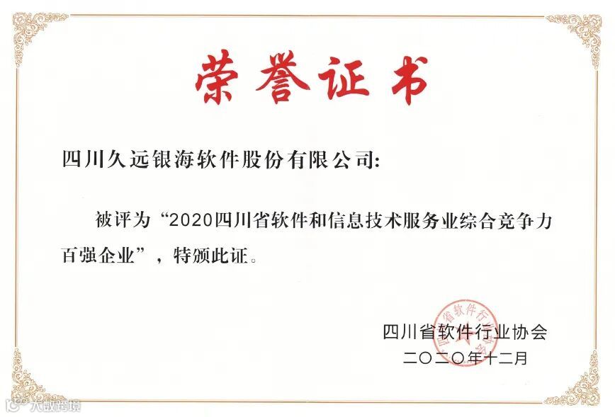 会上,久远银海还荣获了2020年四川省具有核心竞争力软件企业(规模型)、2020年四川省优秀软件产品等荣誉。