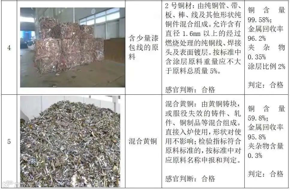 在《再生黄铜原料》(GB/T38470-2019)、《再生铜原料》(GB/T38471-2019)中,对再生黄铜原料、再生铜原料的用途、特征状态、原料来源、金属总含量、铜含量、黄铜含量、回收率、包装等要素分别做出了规定,进口时需对照标准要求如实申报。