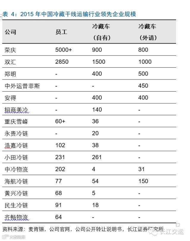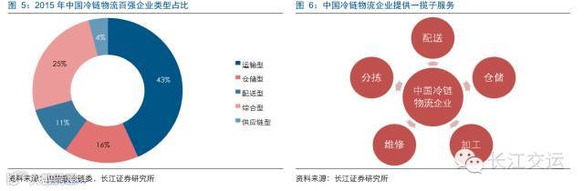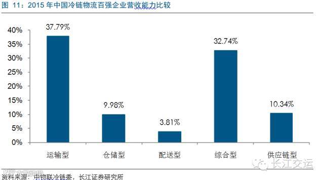 1)行业正在起步阶段,单一业务难以保证企业的收入和利润。从中物联冷链委统计的2015年中国冷链物流百强企业情况来看,运输型冷链物流企业数量占比最多为43%,而其营收占比仅为37.8%,而综合型和供应链型占比分别为25%和4%,但其营收占比却达到32.7%和10.3%,因此冷藏干线运输企业通常会兼营仓储、配送等形成综合型业务,以提高自身盈利水平。
