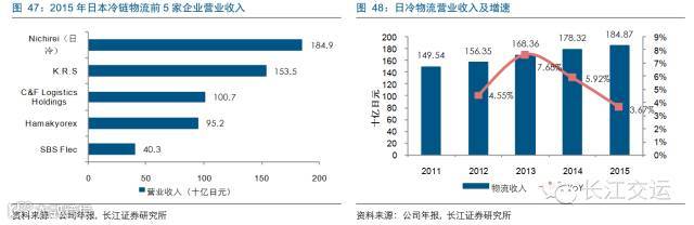 同时日冷物流加快海外布局,目前在欧洲市场已经设有十余个冷库中心,拥有50万吨的冷库容量;在中国上海设有上海鲜冷储运有限公司,拥有5万吨的冷藏储藏能力,同时公司计划在中国大连、武汉、重庆增设运营中心,拓展中国市场。2015年,日冷物流海外业务贡献营业收入339亿日元,占公司总营收的18.3%,且近年来海外业务的营收能力也在逐步提升。
