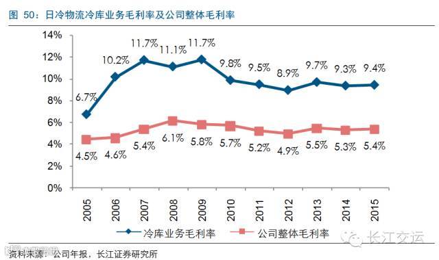 2014-2015年,公司总的毛利率高达52.5%、53.8%,其中运输业务毛利率较低,而冷藏、预处理、装卸业务的毛利率都在50%-60%之间,拉动了公司整体毛利上升。公司冷藏业务毛利率如此之高,远超于日冷物流集团,原因在于:1)中国冷链物流行业起步晚,近年来食品安全问题以及生鲜电商的崛起使得冷库需求持续扩大,供不应求导致企业议价能力相对较强,相比之下日本冷链行业发展成熟、供需平衡,价格稳定;2)冷库运营属于重资产行业,在发展初期区域特征明显,而公司基本属于湖南地区的垄断冷库运营商,占据大部分市场。