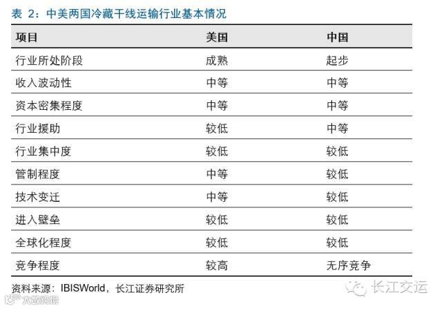 参照美国冷藏干线运输行业,综合型冷链是中国未来发展方向