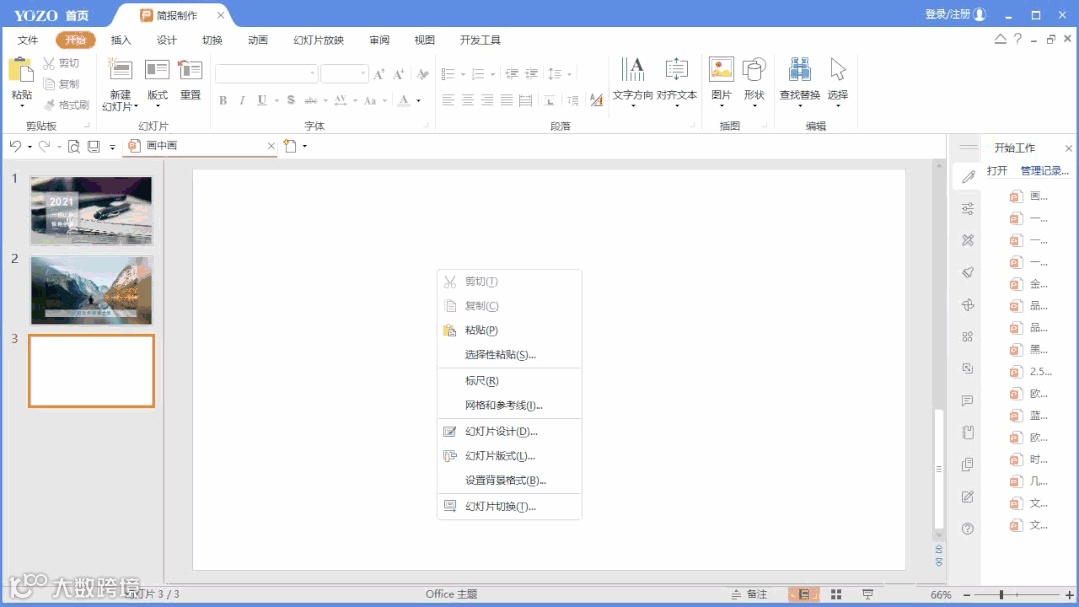 1、打开永中Office客户端-新建空白简报,设置背景格式,填充我们与PPT主题相关的图片作为背景。