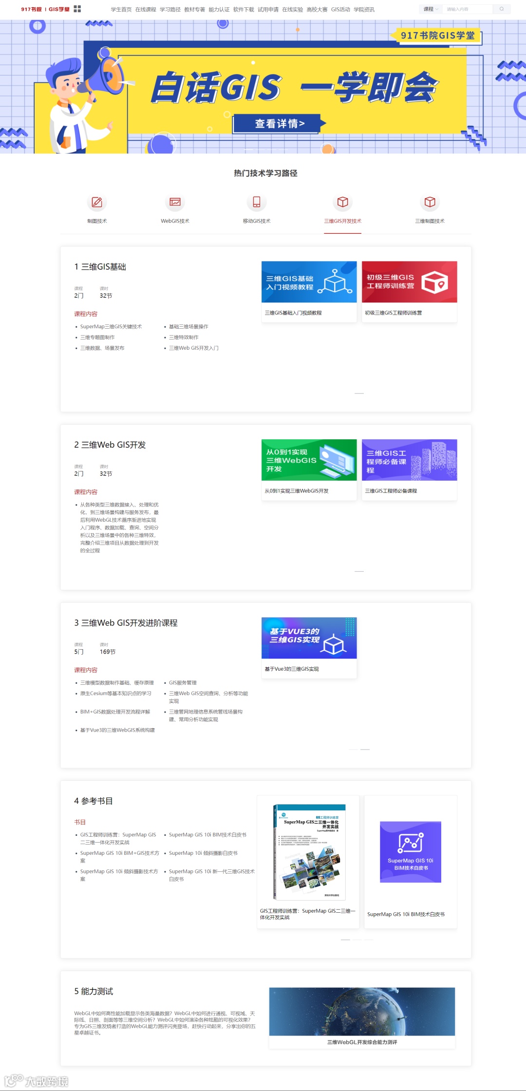 距离下次认证还有几个月的时间,对于此次未来得及参加或认证未通过的朋友,在此期间我们应该如何做好考前学习呢?“917书院GIS学堂”(https://edu.supermap.com/)-“学习路径”版块精心打造阶梯式学习路径,按不同的技术方向为您展示最佳学习内容,助您快速全面掌握所需知识。
