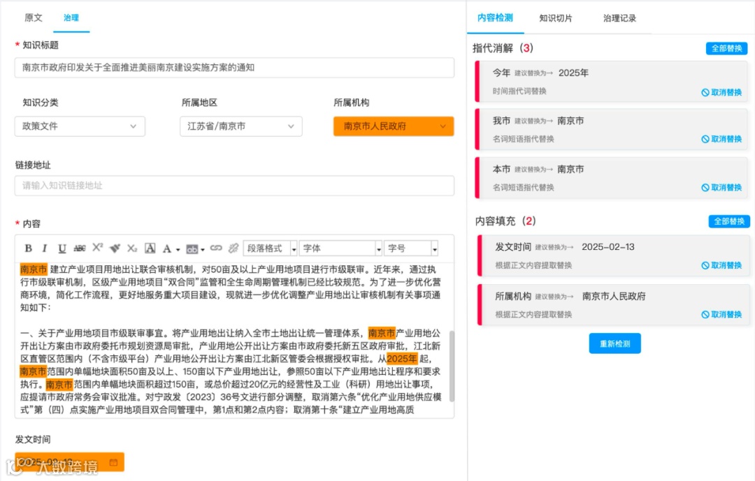 通过指代消解、内容填充、多模态解析等强大的数据治理优化能力,大幅提升知识的质量和可用性。