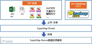 说到空间大数据,人们常常会赋予它“高大上”的标签,想搞空间大数据,但一想到要投入大量的开发和人力成本,就望而却步了。但在SuperMap iPortal 9D(2019)中,这些问题将迎刃而解,您可以通过可视化界面,上传ShapeFile、Excel、CSV等多种类型的空间数据,还可以将自管理的HDFS(Hadoop分布式文件系统)注册到iPortal中,在门户中轻松进行大数据的存储与统一管理。