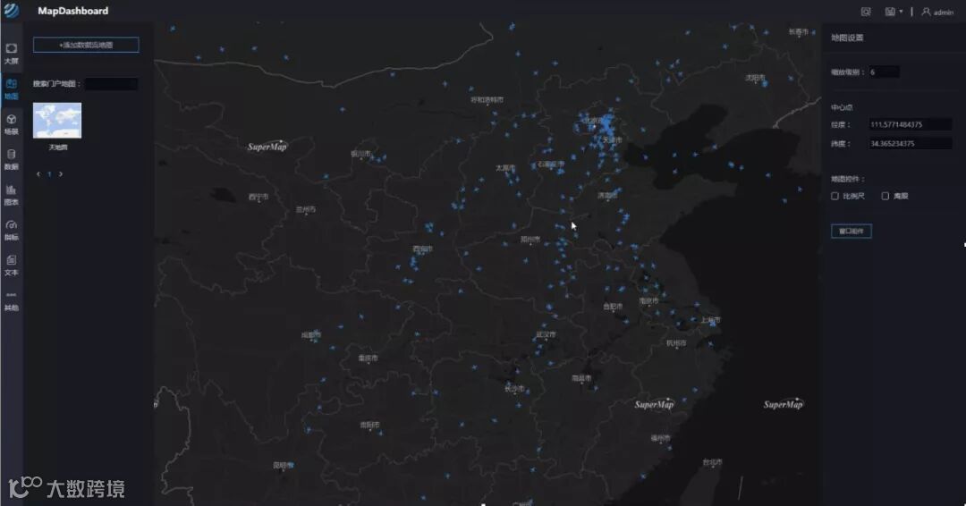 提供地图、图表、文本、图片、指标等丰富的可视化组件。