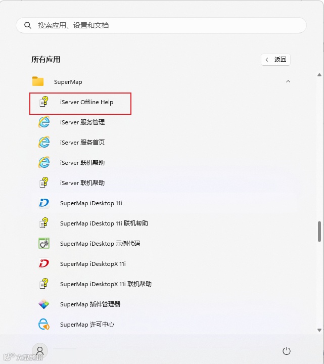 iServer安装成功后,Windows应用管理可直接双击打开“iServer Offline Help”。
