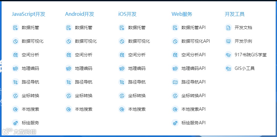 提供面向多种终端的SDK及配套文档,并支持快速集成在线地图和数据,提供了包括Web平台、Android平台、iOS平台等多种平台调用方式,满足用户数据托管、空间分析、位置分析等多样开发需求。