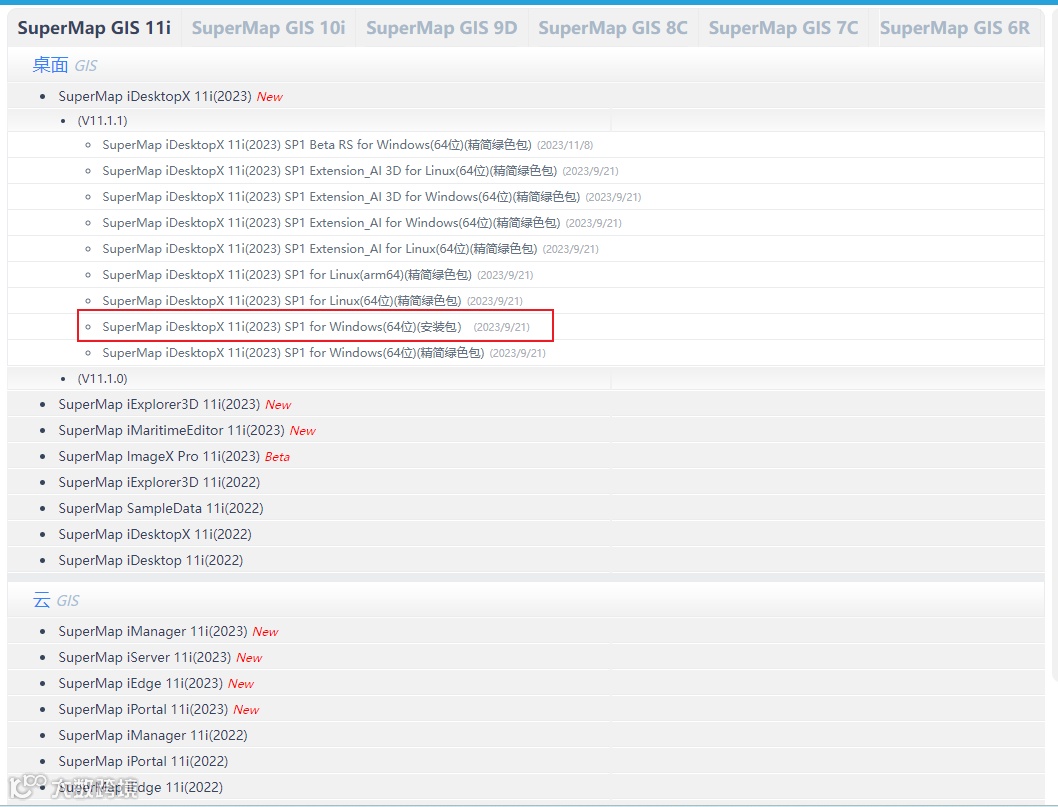 官网提供有最新安装包,入门安装学习推荐使用最新的Windows安装包。空间分析、地图制图等学习使用桌面GIS软件SuperMap iDesktopX,组件开发学习使用SuperMap iObjects .NET或SuperMap iObjects Java,WebGIS学习需要SuperMap iServer、二维开发SuperMap iClient JavaScript、三维开发SuperMap iClient for WebGL/WebGPU,产品介绍见SuperMap GIS 2023产品体系。
