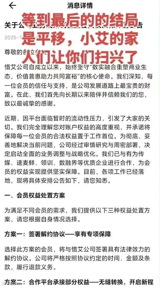 2025年11月22日,艾新合公司发布公告:"因流动性压力,艾兴优选、艾兴合平台将于2025年11月23日暂停运营,会员权益可平移至数融界等合作平台。"