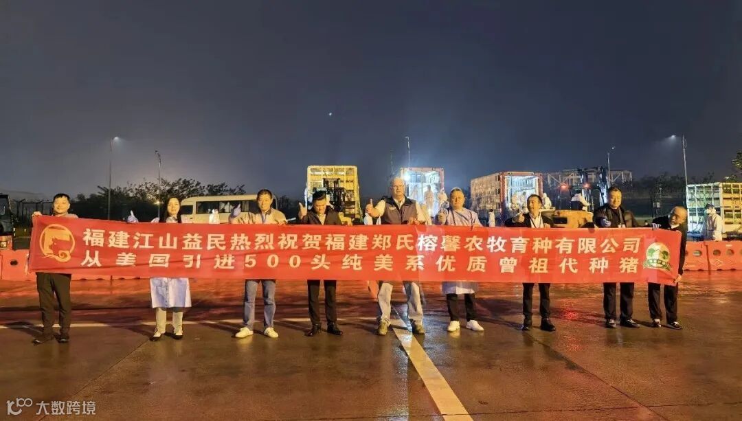 经过十余个小时飞行,伴随着大西南秋雨霏霏,此次以福建郑氏农牧集团为代表、北京顺鑫小店、湖北双寨牧业、安徽君喜悦农牧及内蒙北郎中公司联合引进的924头美国金猪,于北京时间13号凌晨1:32分徐徐降落于重庆江北国际机场。