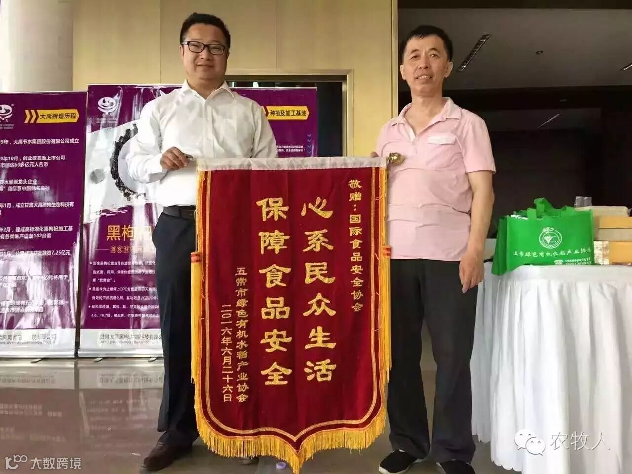 (五常市绿色有机水稻产业协会敬赠国际食品安全协会锦旗)