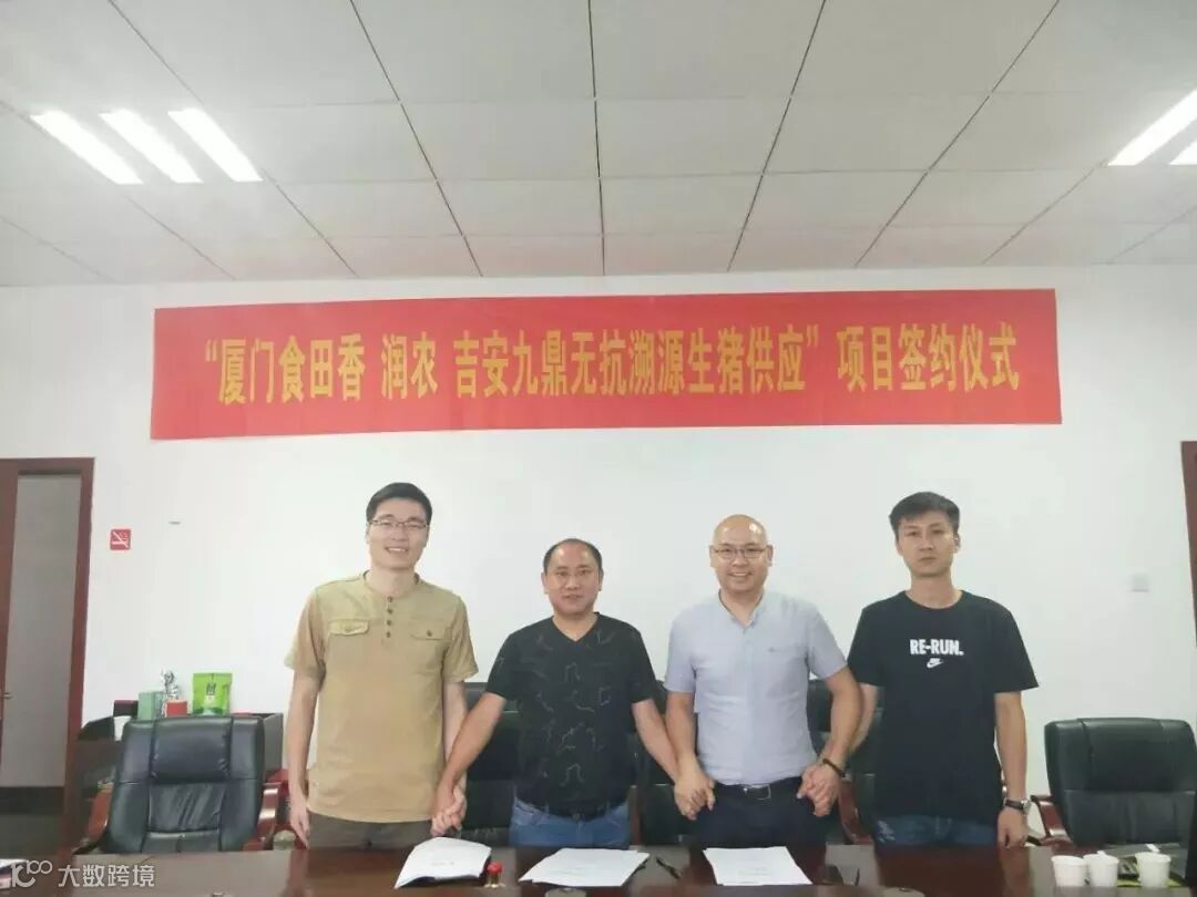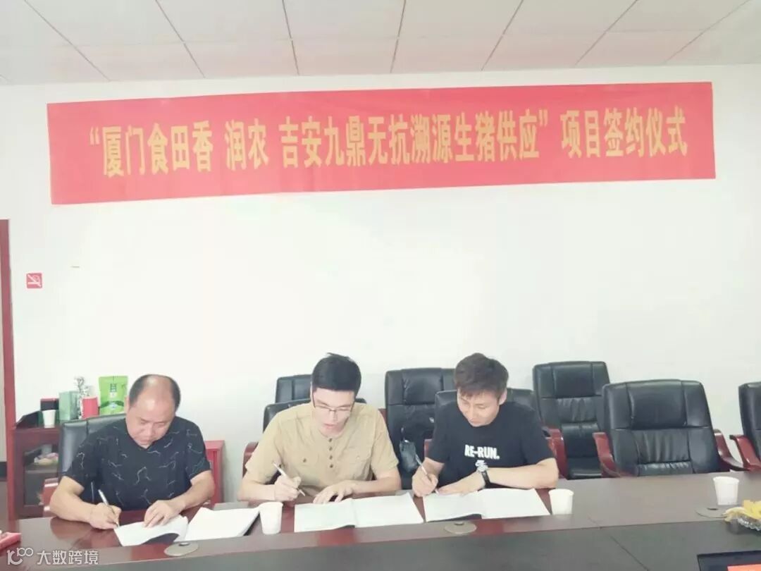 8月3日,深圳润农科技有限公司与厦门食田香公司、吉安九鼎公司的无抗溯源生猪供应项目签约仪式,在江西吉安九鼎会议室成功举办。