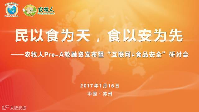 2017年1月16日,由江苏农牧人电子商务股份有限公司主办的“民以食为天,食以安为先——农牧人Pre-A轮融资发布暨‘互联网+食品安全’研讨会”,在苏州太湖高尔夫酒店隆重举行。