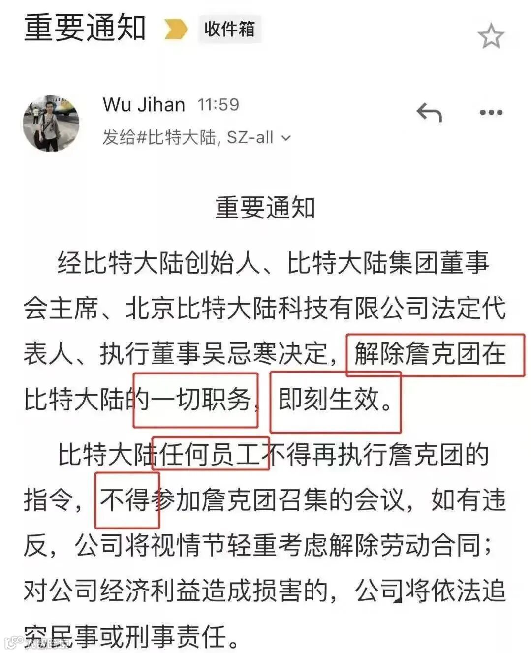 2019 年 10 月,吴忌寒趁詹克团出差,开会免了他的职,自己当法定代表人。