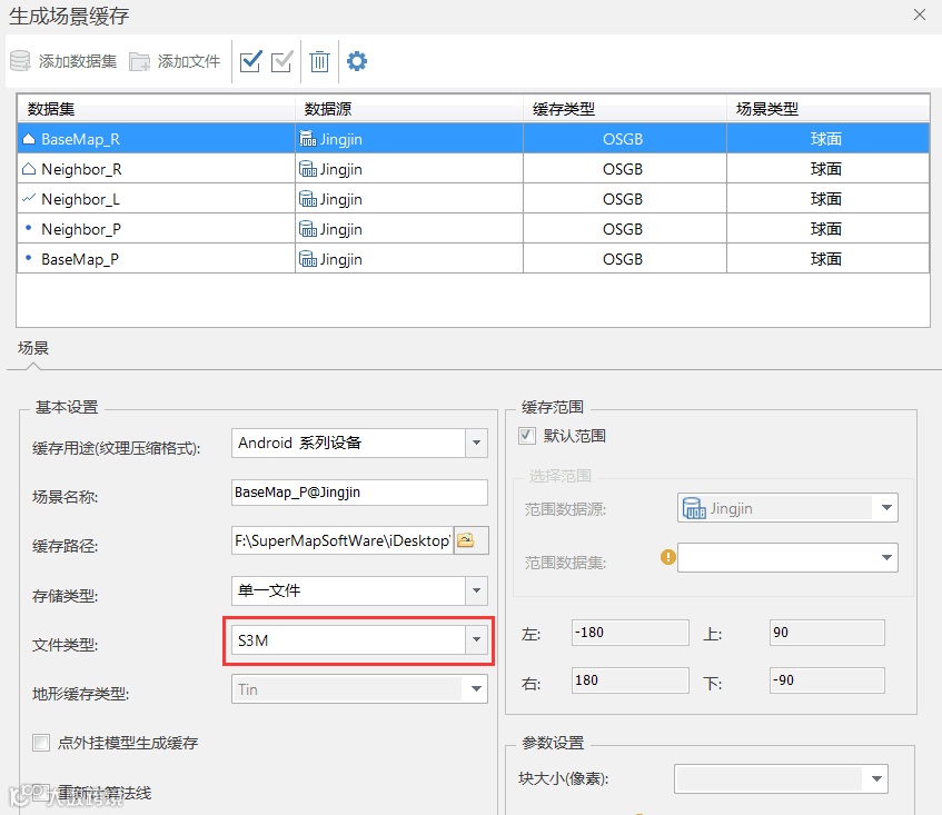 通过SuperMap iDesktop生成场景缓存这一点,相信接触过三维的客户都有过,但针对移动端显示,有几个点需要特别注意下: