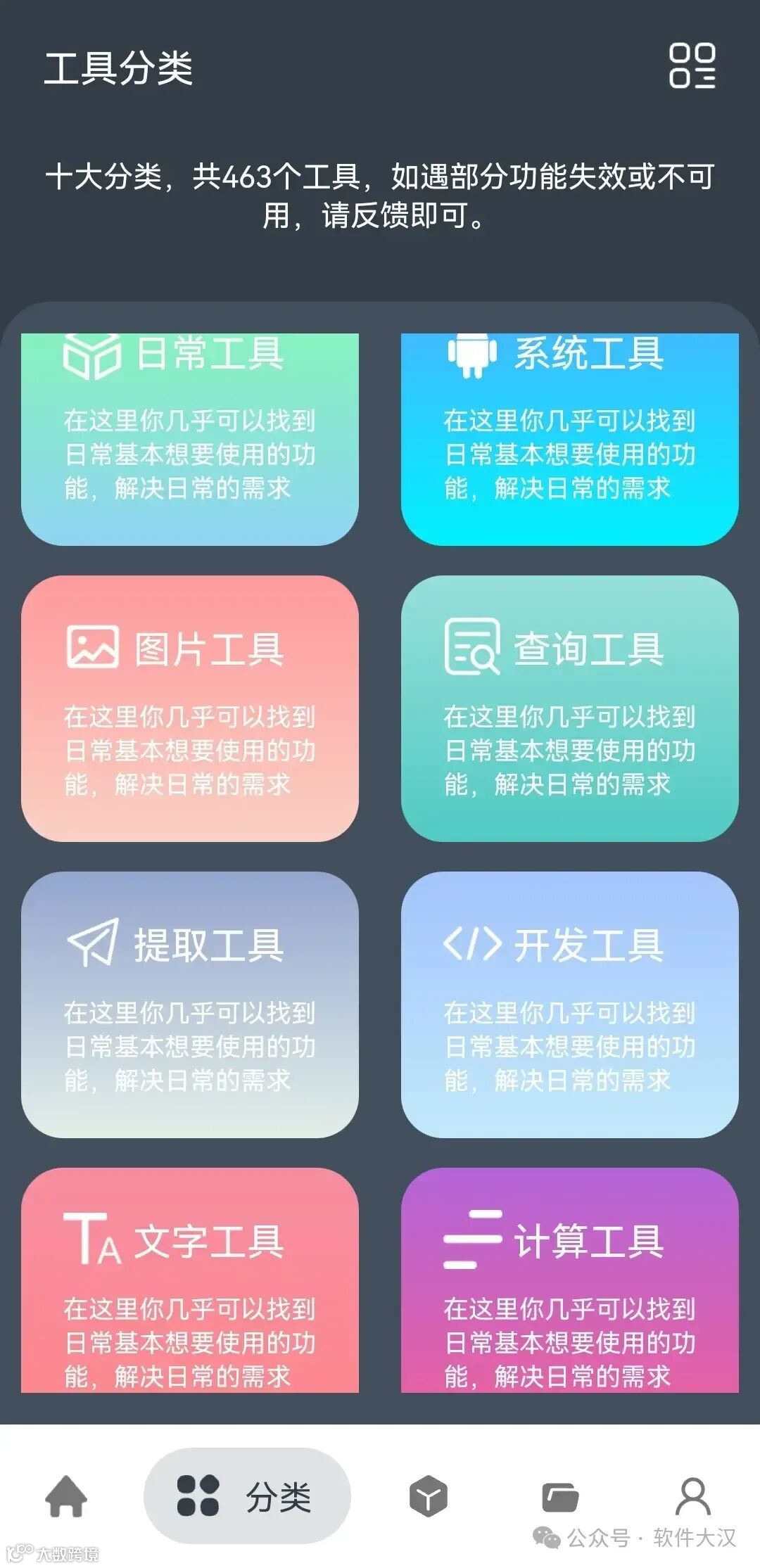 一款汇聚了超多实用功能的手机工具app,包含日常工具、系统工具、图片工具、查询工具、开放工具、其他工具等400+工具,还有持续更新中的最新功能!