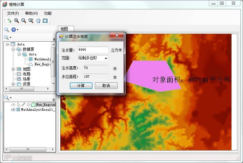 GIS在洪涝灾害监测评估中的应用非常广泛,相必大家都比较了解,比如估算财产损失,监测水位高程,模拟淹没分析等等,为抗洪救灾提供了快速、准确的辅助支撑。今天小编在这里为大家介绍一下结合SuperMap iObjects.NET来计算一定区域范围内注水量的高度和水位高程,从而实现iObjects在洪涝灾害中的简单应用。