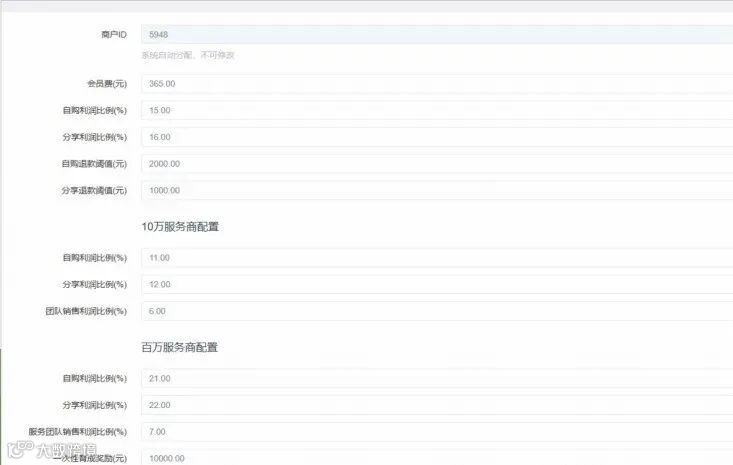 - 基础配置:商户 ID、会员保证金、自购 / 分享利润比例等参数设置。