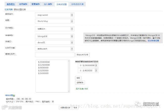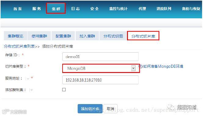 2.选择集群菜单栏,分布式切图库,填写参数,选择MongoDB切片库类型提交