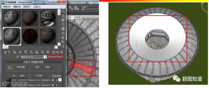 模型使用了多维材质,导出模型后局部区域出现贴图丢失。可能是因为使用了超图3DMAX插件不支持的特殊材质造成。将模型转换为可编辑多边形,打开材质编辑器,使用吸管工具,吸取单个面片材质,若查看为多维材质,则需要将丢失部分重新贴图,然后再进行导出。