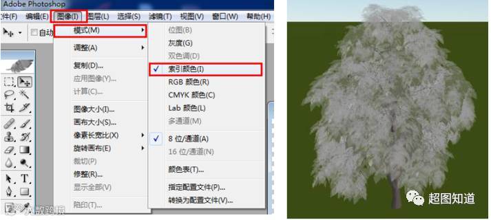 贴图本身原因导致贴图丢失,例如贴图的颜色为索引模式时(图12),导致导出模型后贴图丢失。此时需要修改贴图颜色模式为RGB颜色(图14),重新导出即可。