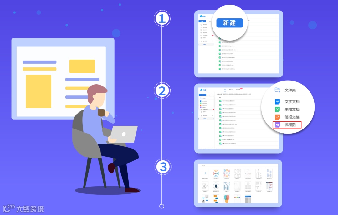 点击【新建】-【流程图】,就能快速创建或直接套用模板,简单拖曳图形、自由布局关联,增添需求元素的同时,还能自定义页面细节,为追求增效的达人们的电脑桌面&内存双“减负”。