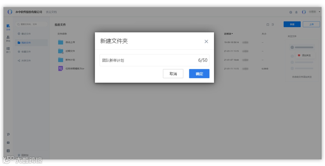 如何记录这“一点一滴”?打开永中优云,直接在“我的文件”新建“新年计划”文件夹,按照时间节点(可按个人习惯设置)建立层级子文件夹,按时更新上传,计划轻松归档。