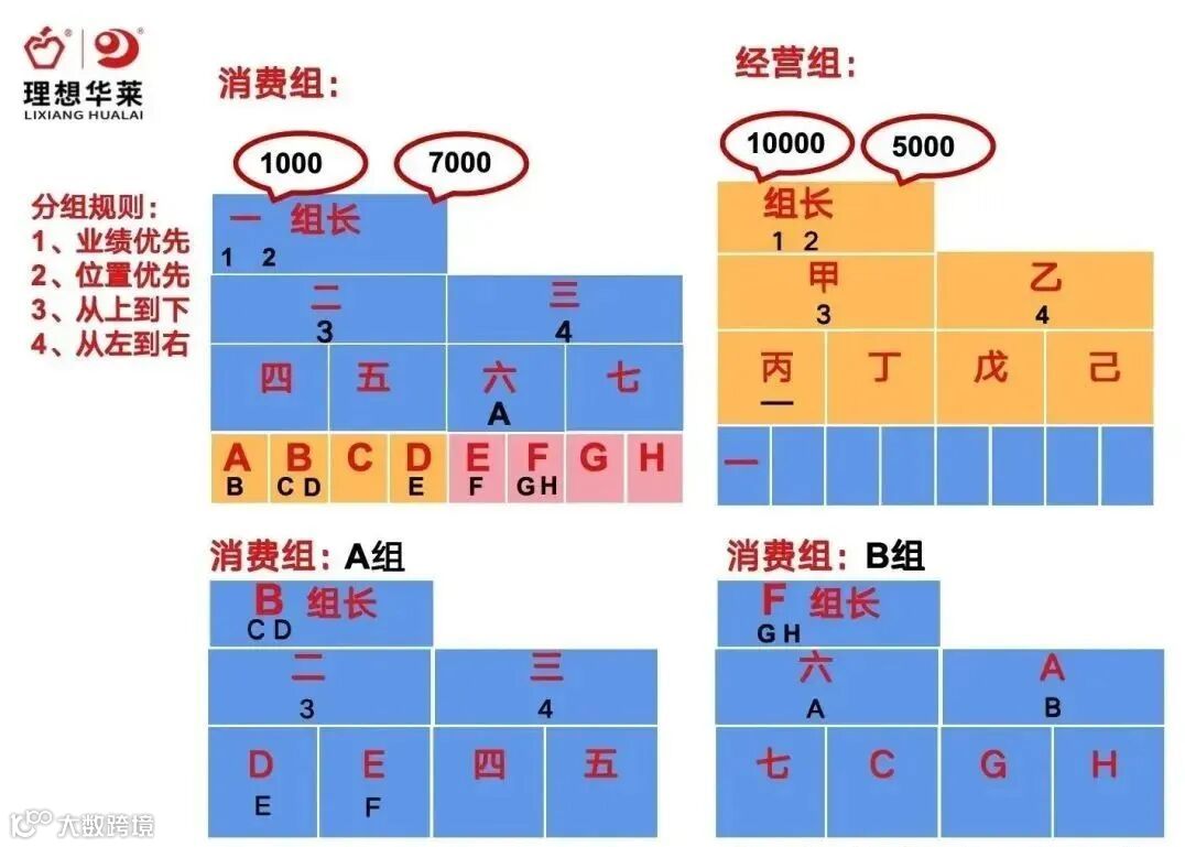 理想华莱将分销体系设计为"消费组 + 经营组" 的循环模型,核心在于分组裂变机制: