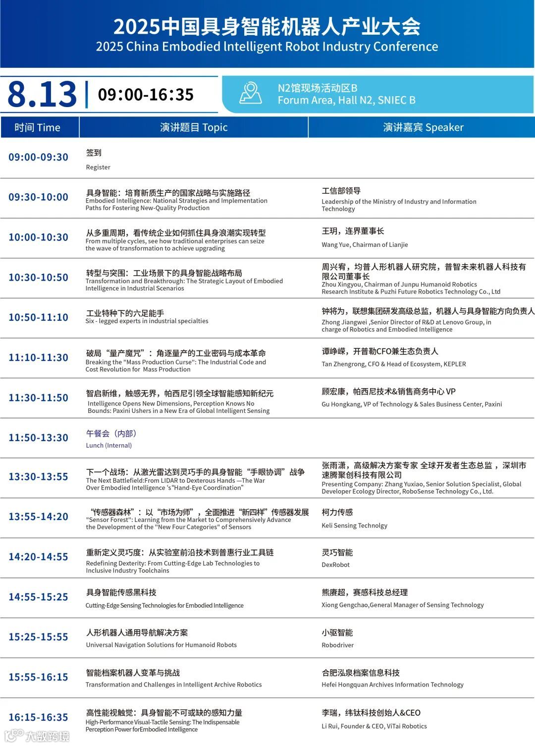 2025年8月13日-15日,2025中国具身智能机器人产业大会暨展览会将在上海新国际博览中心盛大启幕!我们倾力打造“大会+展览+活动”三位一体的全链路商贸对接平台,深度覆盖具身智能机器人产业生态,从机器人原材料及零部件供应商、系统集成商、仿真及测试到整机制造,聚焦具身智能、汽车科技等前沿领域;覆盖核心部件到终端应用,一站式把握产业脉搏!