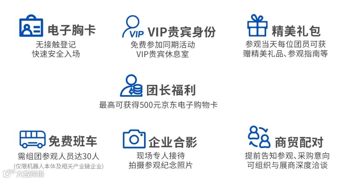 仅需5人即可成团,直击海量资源,精准对接商机。赶快报名参与组团,畅享高效观展体验!更有机会尊享VIP贵宾待遇,现场领取限量精美礼品、大巴接送服务等专属VIP观众福利!