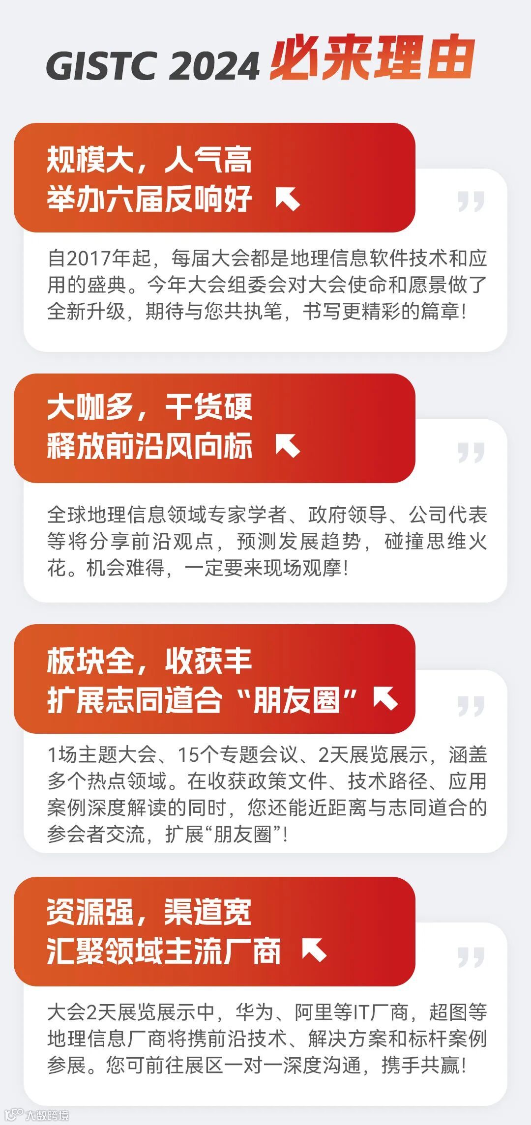 “2024空间智能软件技术大会”是“2023地理信息软件技术大会”的全新升级,以“分享空间智能软件最新进展,交流空间智能应用最佳实践”为使命,以“打造全球规模最大、最具影响力的空间智能软件技术类大会”为愿景。大会自2017年开始举办,迄今已经成功举办六届,每届有来自全球的数十万名嘉宾参与线下、线上会议。